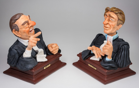 Advocatenbustes van Guillermo Forchino: ‘PROVE-IT!’ versus ‘THE EVIDENCE’. (FO85705 & FO85706 – h. 21 cm.)