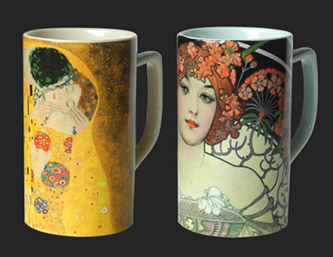 Nieuw in onze museum gifts collectie: speciaal ontworpen elegante mokken. (MUG04KL & MUG07MUC – h. 11 cm. / Ø 6 cm.)