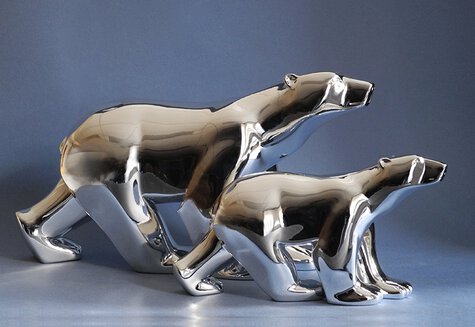 Francois Pompon (1855 – 1933) werd geboren in Saulieu in de Franse Bourgogne als zoon van een meubelmaker. Hij bezocht zowel l’Ecole des Beaux Arts als l’Ecole Nationale des Arts Décoratifs. Tijdens zijn opleiding ontmoette hij de beeldhouwer van dierfiguren Pierre-Louis Rouillard, wat wellicht de inspiratiebron vormde tot het werk waarom hij veel later beroemd zou worden. In 1882 trouwt hij Berthe Velain en tracht hij een eigen oeuvre op te bouwen. Uiteindelijk treedt hij in dienst bij Rodin, waar hij na drie jaar ‘chef de l’atelier’ wordt. Pompon concentreert zich op dierfiguren maar een brede waardering blijft uit. Pas wanneer hij 67 jaar oud is volgt zijn grote doorbraak met de tentoonstelling van ‘l’ours blanc’ in gips op de Salon des artistes Français. (POMS11 – h. 18 cm. & POMS01- h. 11 cm.)