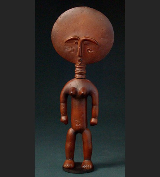De Asante beeldhouwers zijn beroemd om hun vrouwenbeeldjes, bekend als ‘Akua’ba’. Ze zijn meestal tussen 20 en 40 cm. hoog en hebben een groot, rond plat hoofd op een gestileerd lijf. Deze vorm sluit aan op de schoonheidsidealen van de Akan vrouwen: een hoog, plat voorhoofd, een kleine mond en een lange, versierde nek. Aan het gewijde beeldje worden bovennatuurlijke krachten toegeschreven. Het bevordert de vruchtbaarheid van de vrouw, en helpt onvruchtbaarheid te overwinnen. De vrouw draagt het beeldje overal bij zich, en behandelt het als een echt kind. Wanneer het beeldje zijn dienst heft bewezen, wordt het bijgezet in het huisaltaar. De kleine inkepingen in het gezicht zijn bedoeld om het kind later tegen de stuipen te beschermen.