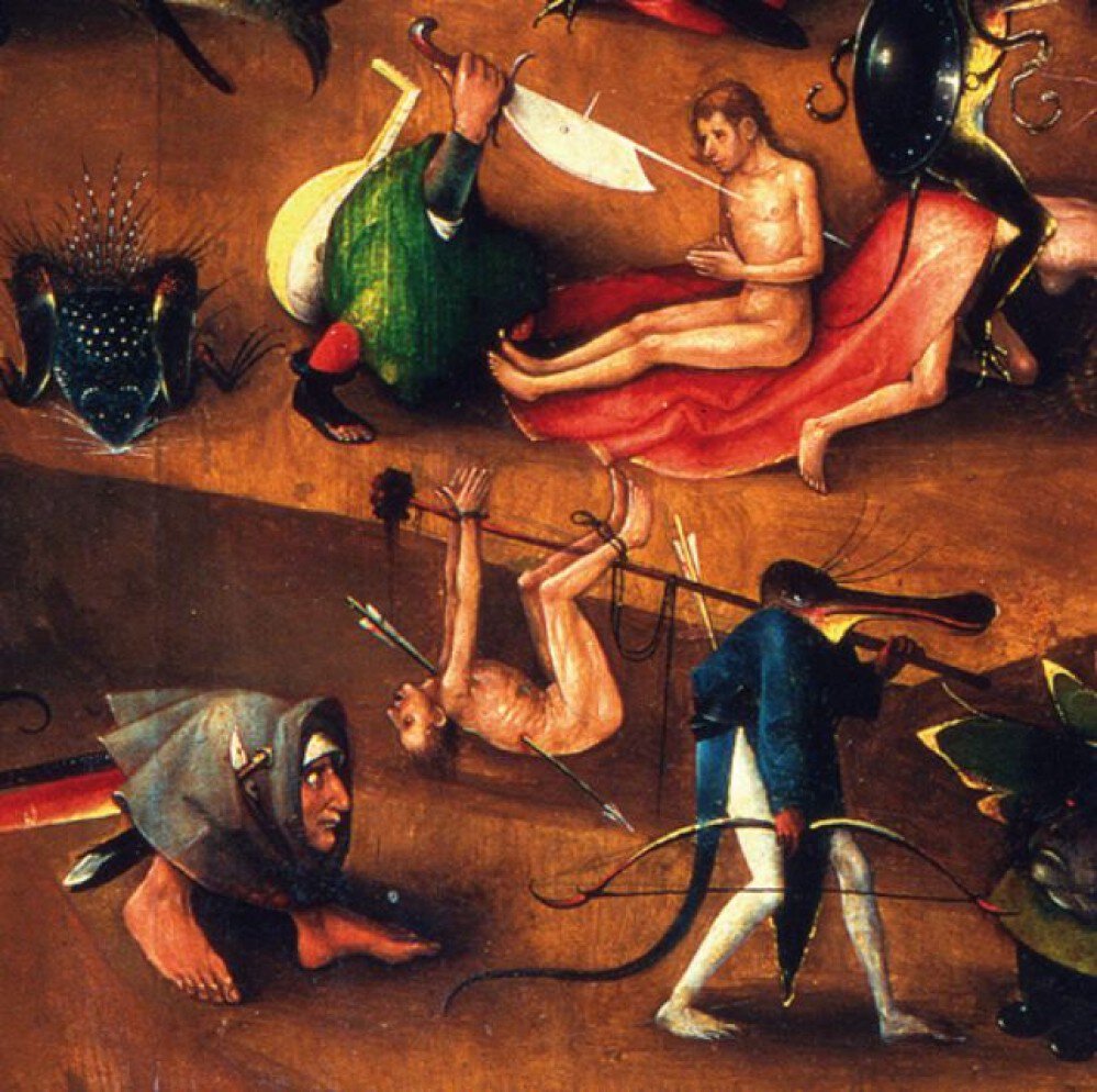 Hiëronymus Bosch waarschuwt ons voor de gevolgen van een zondig leven. De val van de opstandige engelen op het linker paneel luidt het begin van het einde in. Vervolgens ziet men enkele uitverkorenen in de hemel, met onder zich de grote rest, die op de jongste dag de meest vreselijke folteringen moet ondergaan.