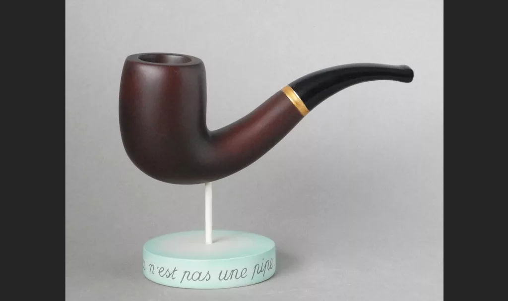 La Trahison des Images (1929). Olie op doek. 60 x 80 cm. Het iconische werk weerspiegelt, in de stijl van een advertentie, het filosofische vraagstuk van de onderlinge verhouding van beeld, woord en werkelijkheid.