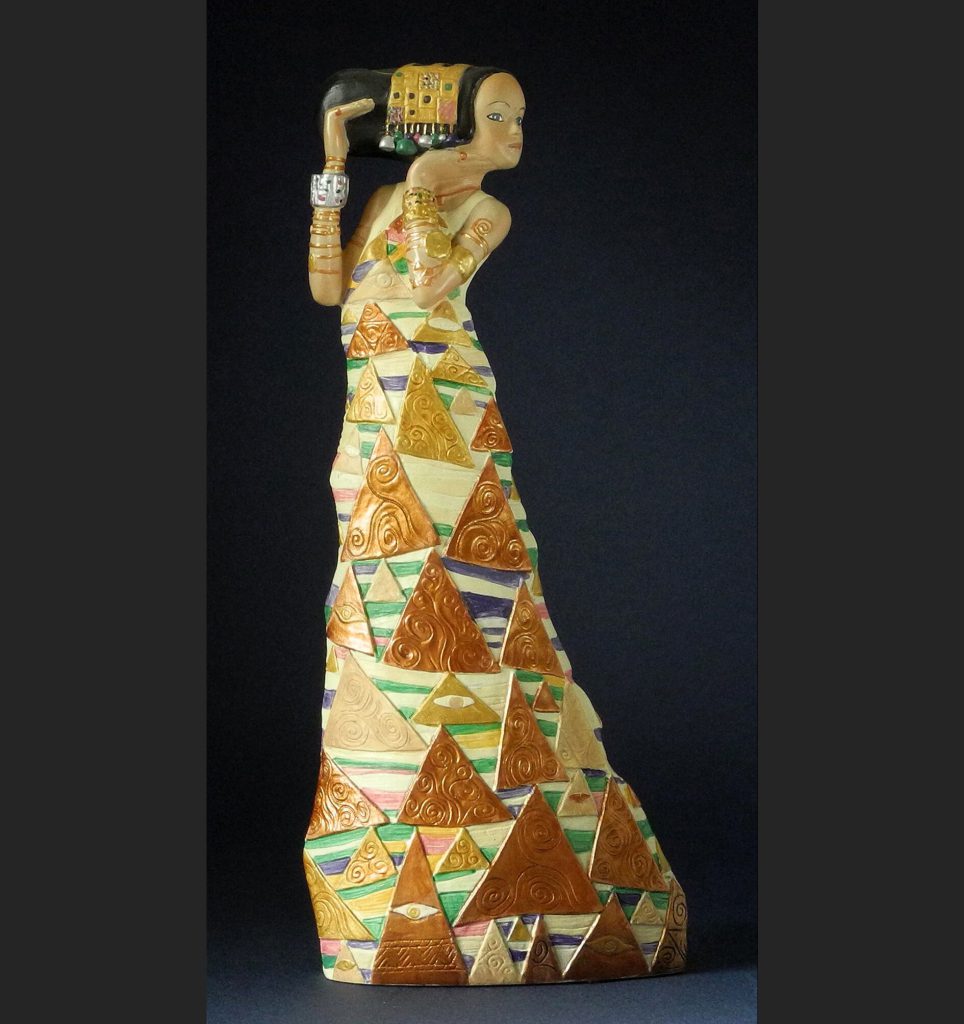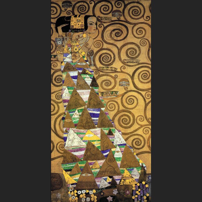 Klimt zelf, een man van weinig woorden, duidde het later simpelweg aan als 'de danseres', maar wellicht staat deze geometrisch geörnamenteerde afbeelding van een jonge vrouw toch in logisch verband met 'De Vervulling', eveneens een ontwerp voor een mozaïek in het Palais Stoclet te Brussel.