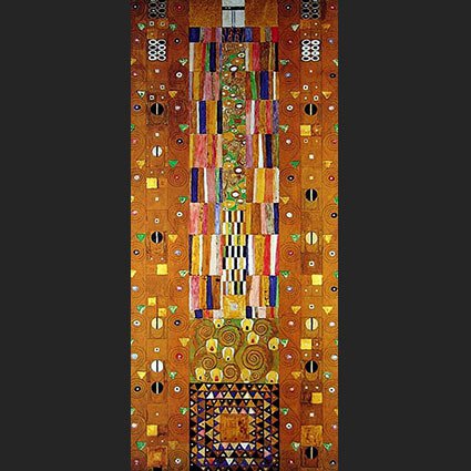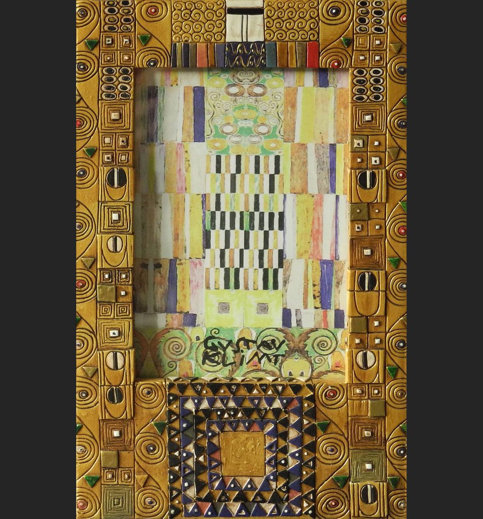 De fotolijst is gebaseerd op het ontwerp dat Klimt maakte voor de kopse kant van het fries in het Palais Stoclet in Brussel, een geheel in de stijl van de Wiener Secession gebouwde villa.