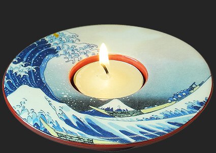 De beroemde houtsnede van de grote golf, met op de achtergrond berg Fuji, is de eerste van de beroemde serie “36 Gezichten op de Berg Fuji” uit de late Edo periode. De enorme golf bedreigt twee schepen voor de kust van de prefectuur Kanagawa (direct ten zuiden van Tokio).