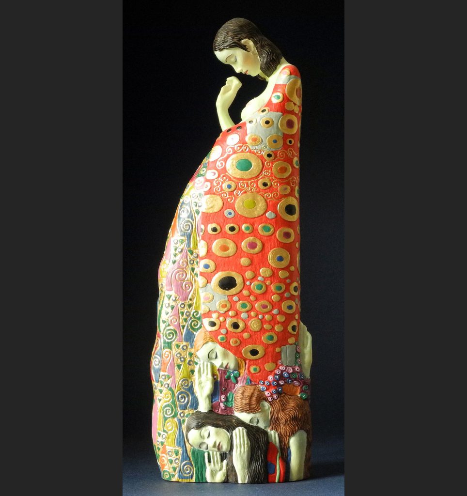 Het tweede schilderij met de titel ‘Hoop’ werd in 1909 aan het publiek getoond in de Klimt-zaal van de tweede Kunstschau. Daar hing ook het eerste schilderij, dat zes jaar daarvoor wegens aanstootgegevendheid was teruggetrokken van de retroperspectieve Secezion-tentoonstelling. Klimt zelf zei toen over dit schilderij: ‘Alles is lelijk, zij is het, en wat ze ziet, maar binnen in haar groeit schoonheid, hoop. En haar ogen vertellen dat.’