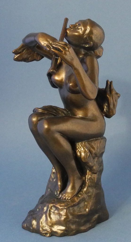 Twaalf jaar nadat Claudels beroemde beeld La Valse op de Parijse Salon was getoond werd in 1905 ook La Joueuse de Flûte op deze belangrijke jaarlijkse tentoonstelling toegelaten. Een jaar eerder schreef Claudel al aan de bronsgieter Blot dat ze een “petite faunesse” had geboetseerd, en hoe ze zelf enorm gehecht was geraakt aan haar “sirène”. Het bleek achteraf haar laatste grote beeld voordat psychische problemen haar het werken vrijwel onmogelijk maakten.