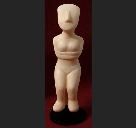 Tussen 3200 en 2000 v. Chr. floreerde op de eilandengroep de Cycladen in de Egeïsche zee een hoogstaande cultuur. Er bevonden zich beveiligde, dichtbevolkte nederzettingen, welvarend door de handel over zee. Een van de belangrijkste aspecten van deze vroege cultuur was de beeldhouwkunst, meestal uitgevoerd in het prachtige witte marmer dat op de eilanden ruimschoots voor handen was. De Cycladische beeldhouwkunst is ingedeeld in types, gebaseerd op chronologie en stijl. Het Spedos-type, genoemd naar een begraafplaats op het eiland Naxos, is het bekendst. Van de betekenis van de vrouwenbeelden is weinig bekend. Sommige decoraties wijzen op een associatie met moederschap en vruchtbaarheid. Veel van de beelden zijn gevonden op begraafplaatsen, wat erop kan duiden dat ze een functie hadden bij begrafenisceremoniën. Belangrijke Europese kunstenaars als Hepworth, Moore, Picasso en Modigliani hebben zich laten inspireren door deze volkomen unieke stijl.