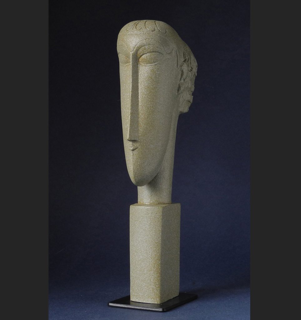 (1911-1913) Al op jonge leeftijd ging Modigliani naar de marmergroeven in Carrara om er zich in het beeldhouwen te bekwamen. Later raakte hij gefascineerd door de traditionele sculpturen uit Afrika en Oceanië. In deze uit steen gehouwen kop herkent men deze invloeden direct. Het is een naar binnen gekeerd portret, waarbij de volmaakte vertikale lijnen de vorm bepalen. Het heeft een meditatieve en sacrale uitstraling, en sluit in dat opzicht aan bij de Hebreeuwse achtergrond van Modigliani.