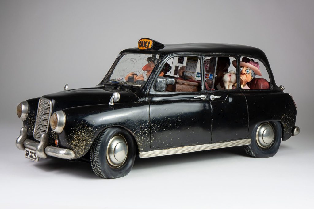 Seeing them at the last minute, the driver of the black cab tried to brake, but one of his wheels went into an enormous pothole full of water and soaked them.